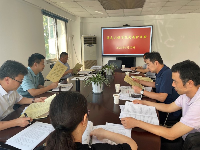 2021年9月10日下午,信息工程学院在致明楼会议室召开党委扩大会,开展党风廉政建设专题学习。张金城副董事长、学院领导班子,以及教工党支部书记参加了会议,会议由书记张勇主持。
