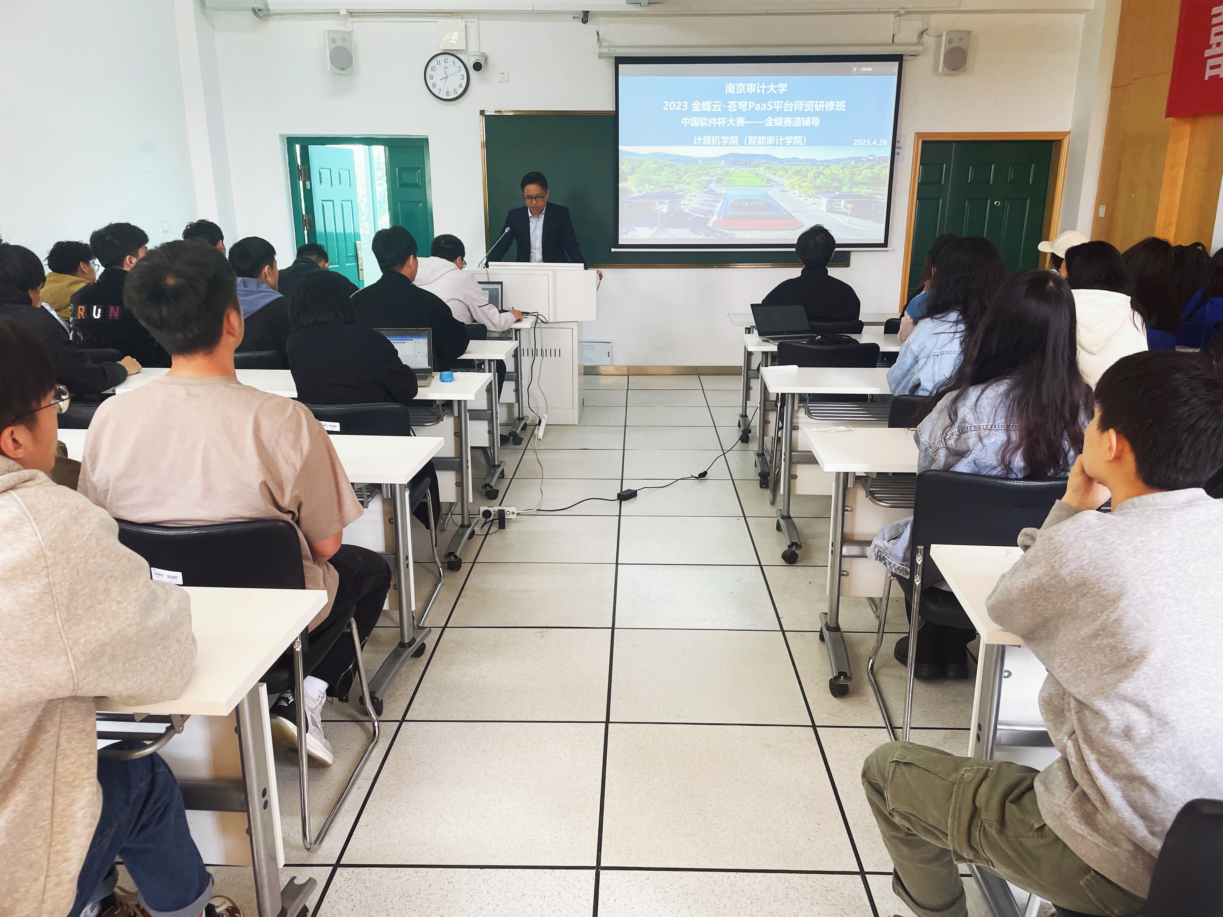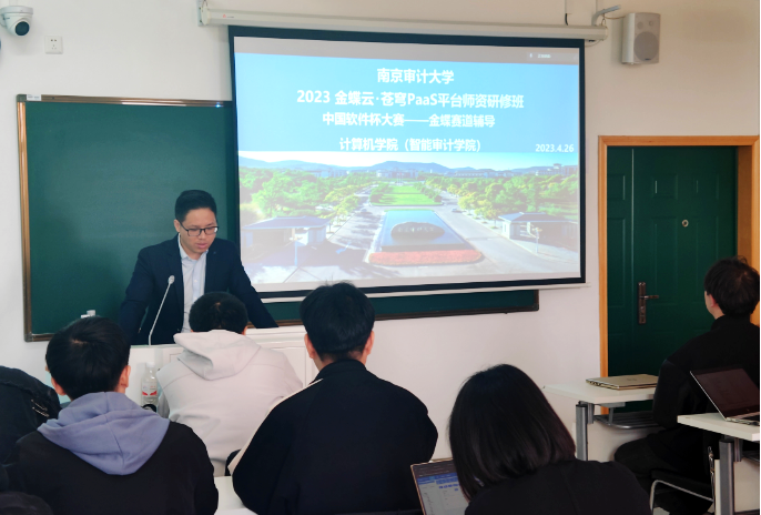 4月26日,球盟会官网联合金蝶精一信息科技有限公司在致明楼318教室组织“南审&金蝶云・苍穹PaaS平台团队研修班”与“中国软件杯大赛——金蝶赛道辅导”活动。